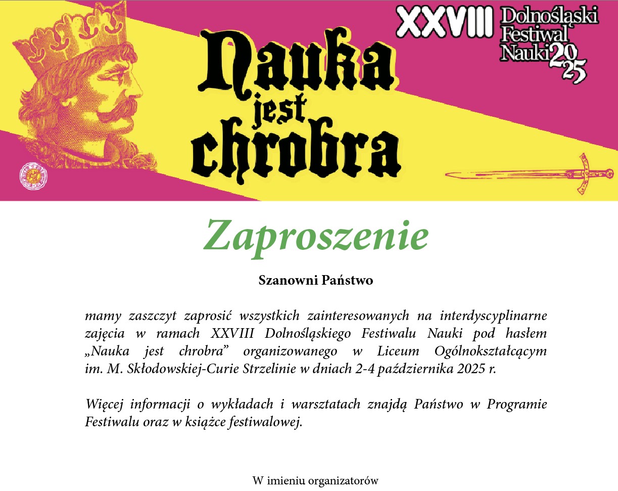 Program Dolnośląskiego Festiwalu Nauki w Liceum Ogólnokształcącym